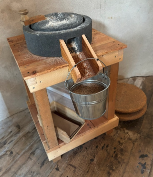 Aanvankelijk was het bedoeling om weer te gaan malen met het koppel kunststenen. De molenaars hadden de steenspil en de loper (de bovenste steen) van dit koppel al gelicht om na te kijken, maar de steen bleek wat gebreken te hebben. Alles werd weer teruggeplaatst en er werd besloten om met het andere koppel te gaan malen. Dit koppel bestaat uit z.g. ‘’blauwe’’ stenen. Deze zijn gehouwen uit lavagesteente afkomstig uit de steengroeven in het Eiffelgebergte in Duitsland. In 2025 wordt e.e.a. gerealiseerd om weer tarwe te gaan malen.