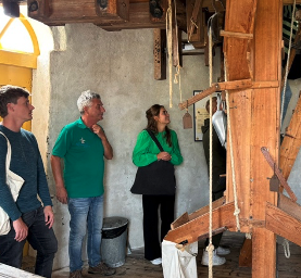Tijdens de excursie laten molengids en molenaar zien hoe de molen werkt. Wat gebeurt er binnenin de molen als de wind de wieken laat draaien. Kom eens kijken naar de techniek in de molen van tandwielen, assen, aandrijfriemen, hefbomen en nog veel meer. Leer hoe graan gemalen wordt tot meel en wat je met dit meel kan doen.