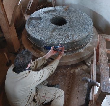 Willem Roose van RWS bezig met revisie van het koppel maalstenen